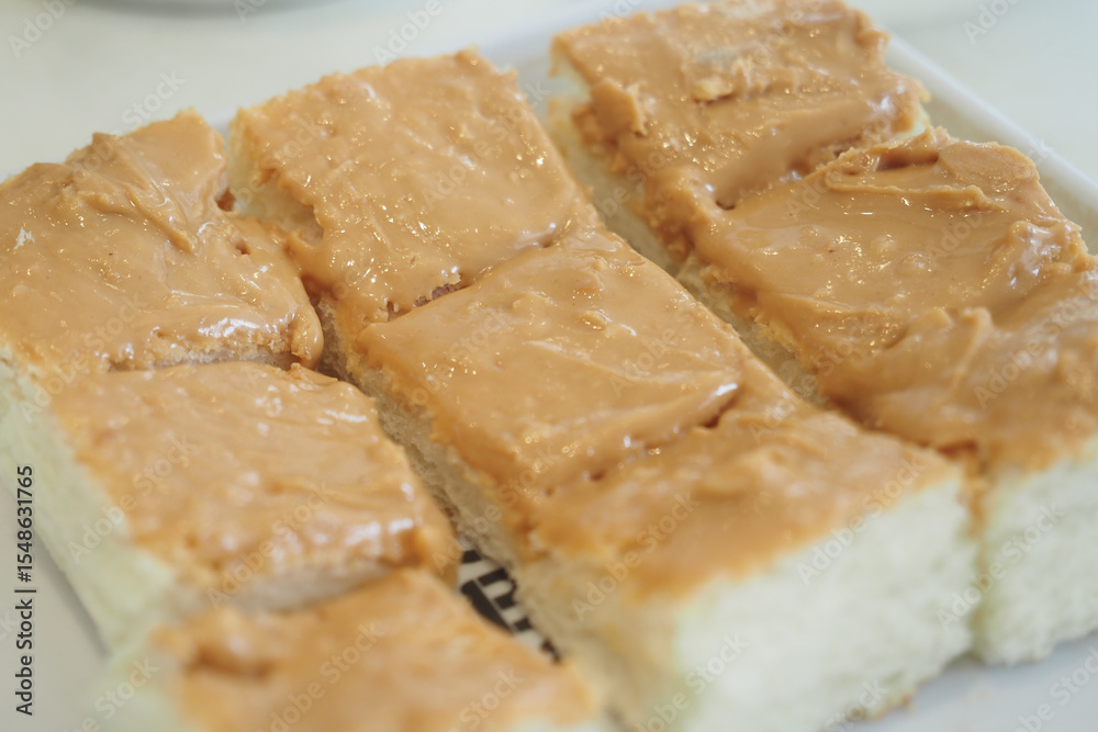 Delicious bread topped with creamy peanut butter snack