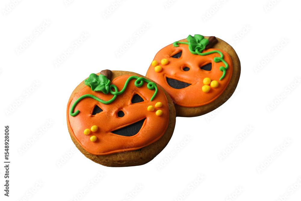 Pumpkin cookies prepped for Halloween, isolated on white, PNG