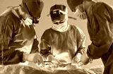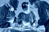 Team of professional doctors surgeons wearing blue medical uniform performing surgical operation in modern operating room at hospital. Medicine, surgery and emergency help concept.