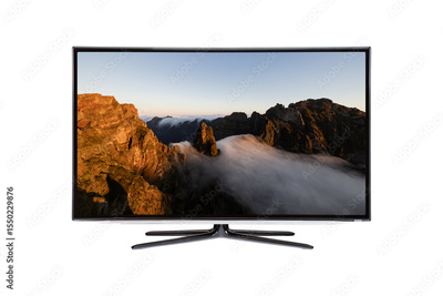 LCD television monitor isolated on white background, with sunset nature view, clipping path