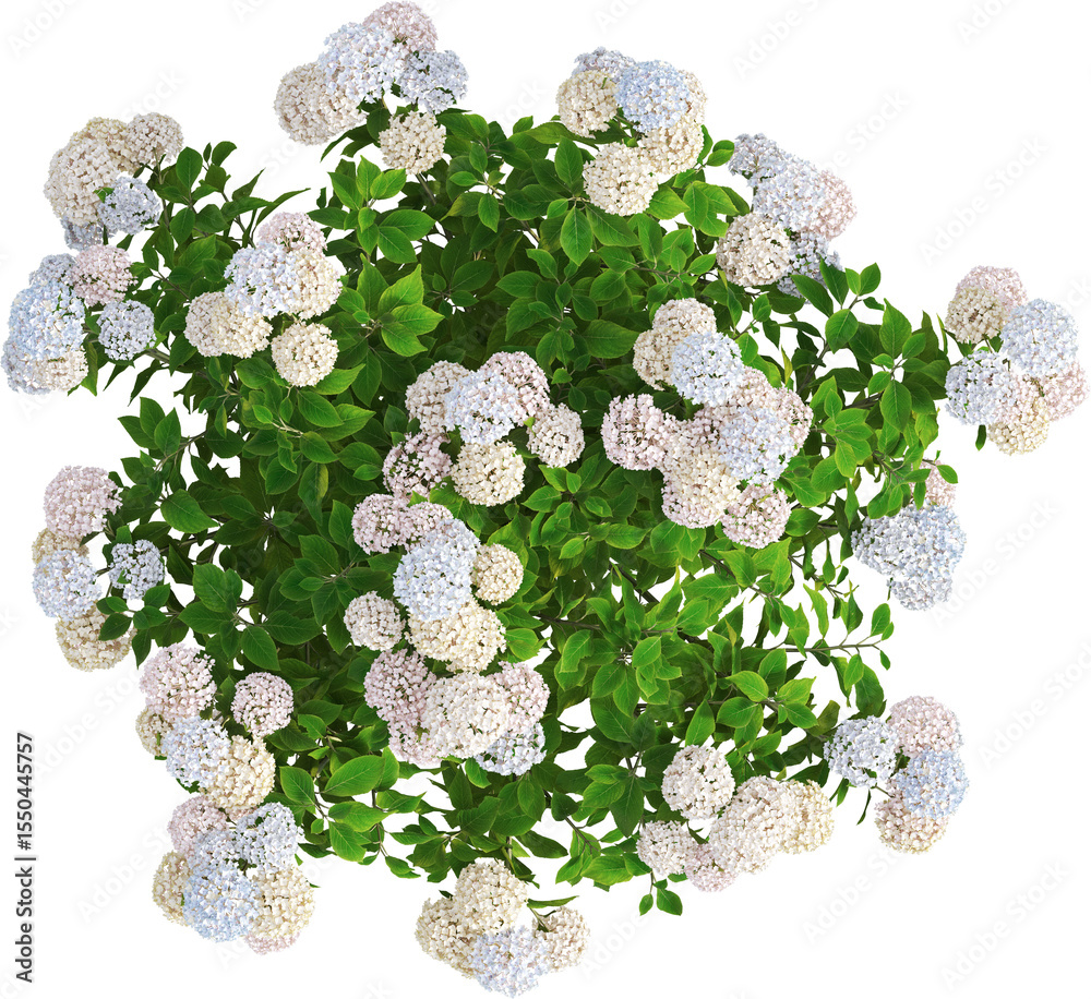 Top view of hydrangea plant with flowers