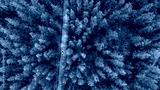 Aerial view of dark green forest road and white electric car Natural landscape and elevated roads Adventure travel and transportation and environmental protection concep