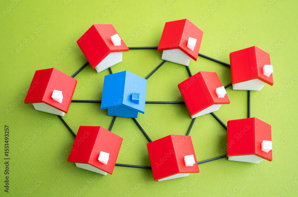 Blue House in a network of connected houses. Autonomy and self-sufficiency. Smart home technologies on a community scale. Data sharing, energy efficiency. IoT adoption. Sustainable communities,