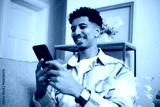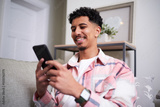 Smiling Man Using Smartphone at Home in a Casual and Relaxed Setting