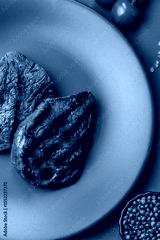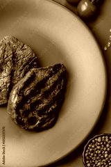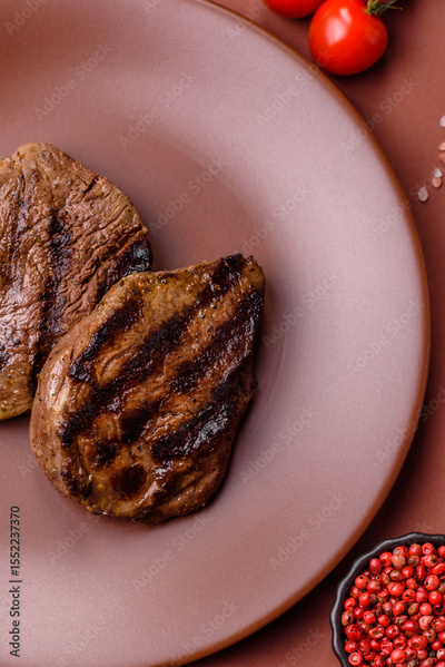 Grilled beef steak meat with salt and pepper. Beef steak grilled on a barbecue