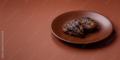 Grilled beef steak meat with salt and pepper. Beef steak grilled on a barbecue