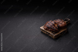 Grilled beef steak meat with salt and pepper. Beef steak grilled on a barbecue