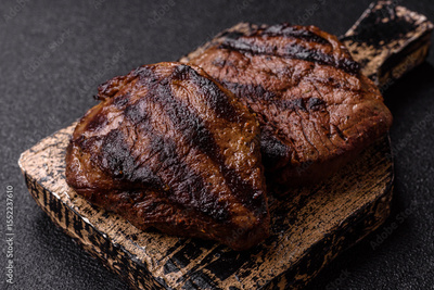 Grilled beef steak meat with salt and pepper. Beef steak grilled on a barbecue