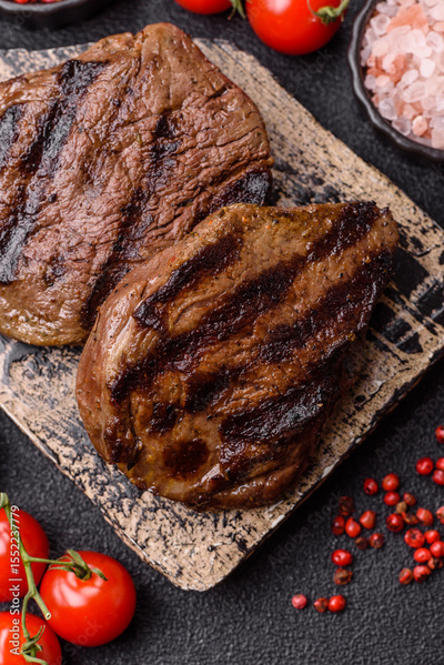 Grilled beef steak meat with salt and pepper. Beef steak grilled on a barbecue