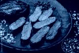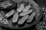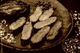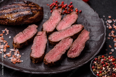 Grilled beef steak meat with salt and pepper. Beef steak grilled on a barbecue