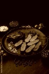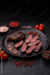 Grilled beef steak meat with salt and pepper. Beef steak grilled on a barbecue