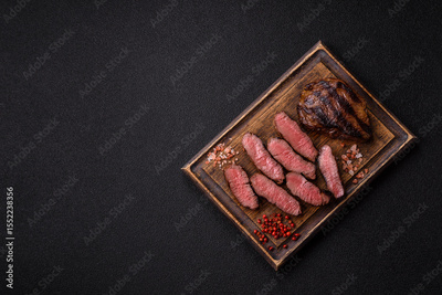 Grilled beef steak meat with salt and pepper. Beef steak grilled on a barbecue