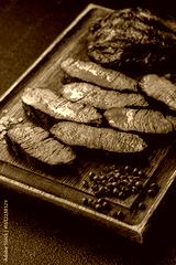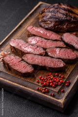 Grilled beef steak meat with salt and pepper. Beef steak grilled on a barbecue