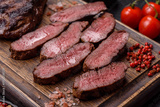 Grilled beef steak meat with salt and pepper. Beef steak grilled on a barbecue