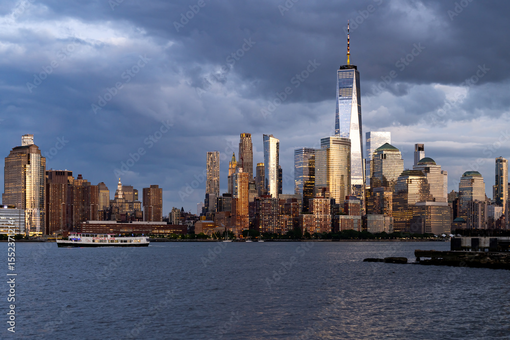 New York City skyline. Manhattan Skyscrapers in NYC, aerial panorama view from Hudson River.