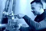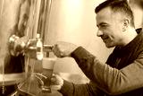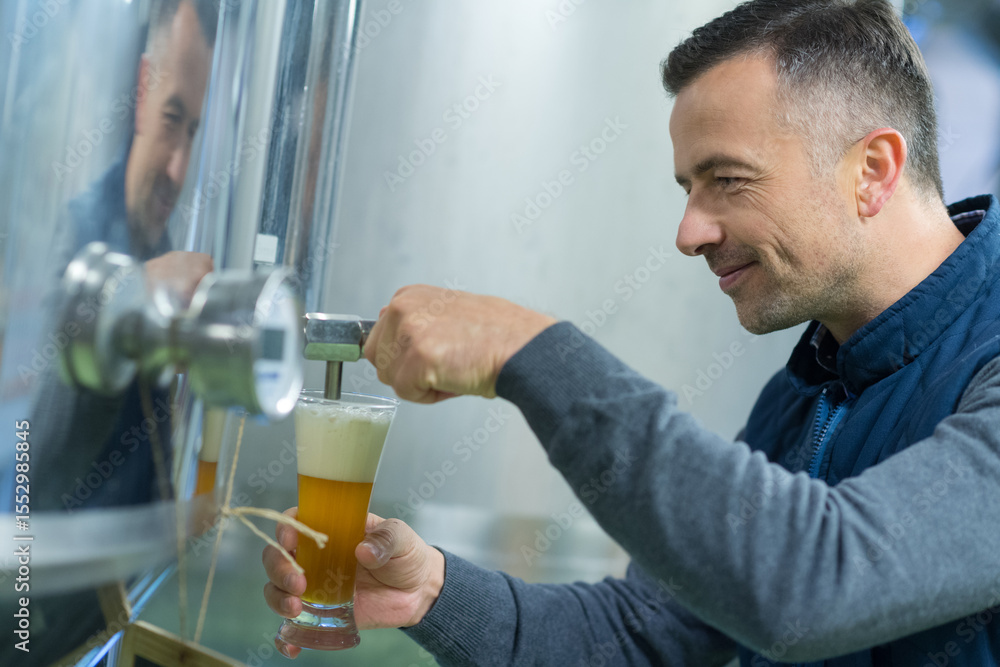 brewer filling glass of beer from vat