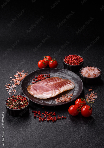 Sliced ham, meat, pork or turkey sausage for sandwiches. Ham slices, food