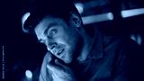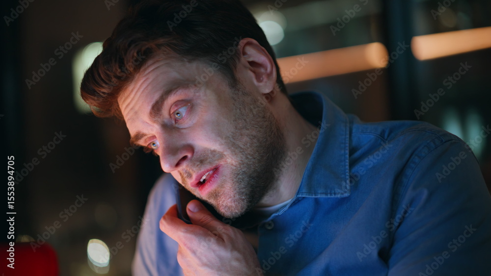 Closeup consultant calling night workplace. Serious businessman discussing issue
