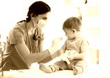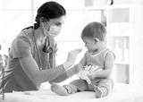Doctor holds an injection vaccination the child