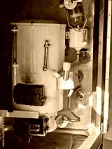 Rusty old water heater with a white cap on top in train wagon rail road
