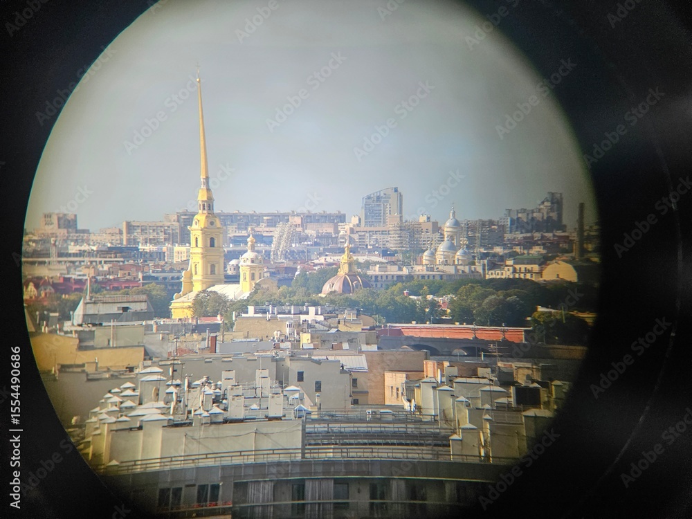 View of a city with a large building Peter and Paul Cathedral in the center. The building has a large dome on top in a city Saint-Petersburg