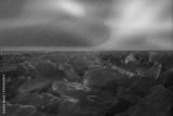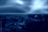 Breaking blue ice over frozen Norwegian Sea - Northern lights or Aurora borealis in the sky over Tromso, Norway