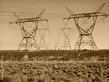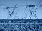 Two tall power lines are in the distance. The power lines are connected to a power plant in South Africa