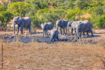 African elephant taking a mud bath, African savannah, Kruger National Park, South Africa