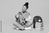 Full length young girl geography student wearing casual clothes backpack bag hold in hands globe Earth map use loupe isolated on plain pastel beige background. High school university college concept.