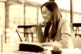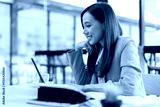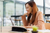 Young busy professional asian business woman company executive or entrepreneur using digital tablet working sitting at desk in office looking at tab, managing financial project data.