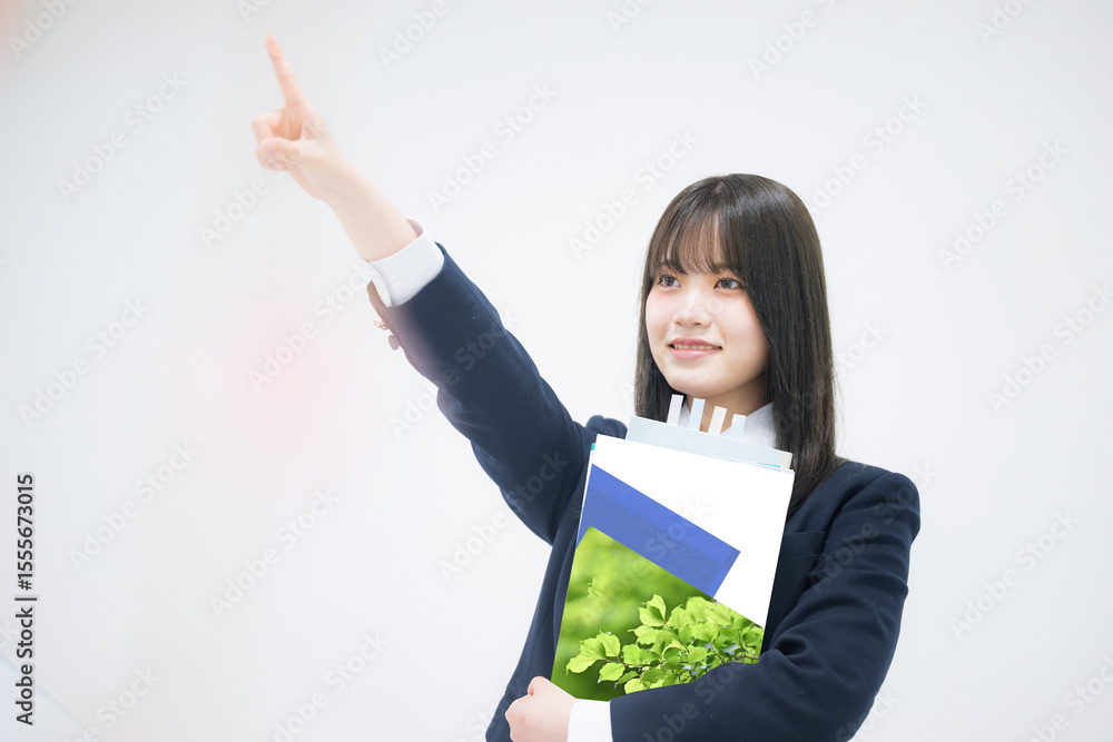 塾や予備校などの大学受験イメージ教科書を持つ女子高生 目指せ合格!