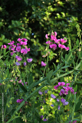 Pink sweet pea flowers in the garden on summer. Lathyrus odoratus