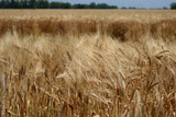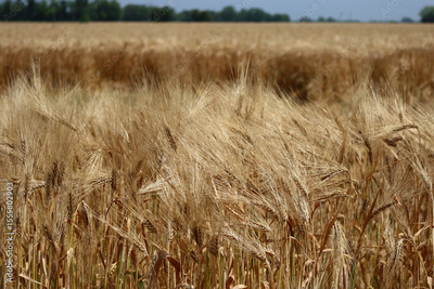 Close-up of golden wheat field ready to harvest on summer.Triticum agricultural field in the italian countryside