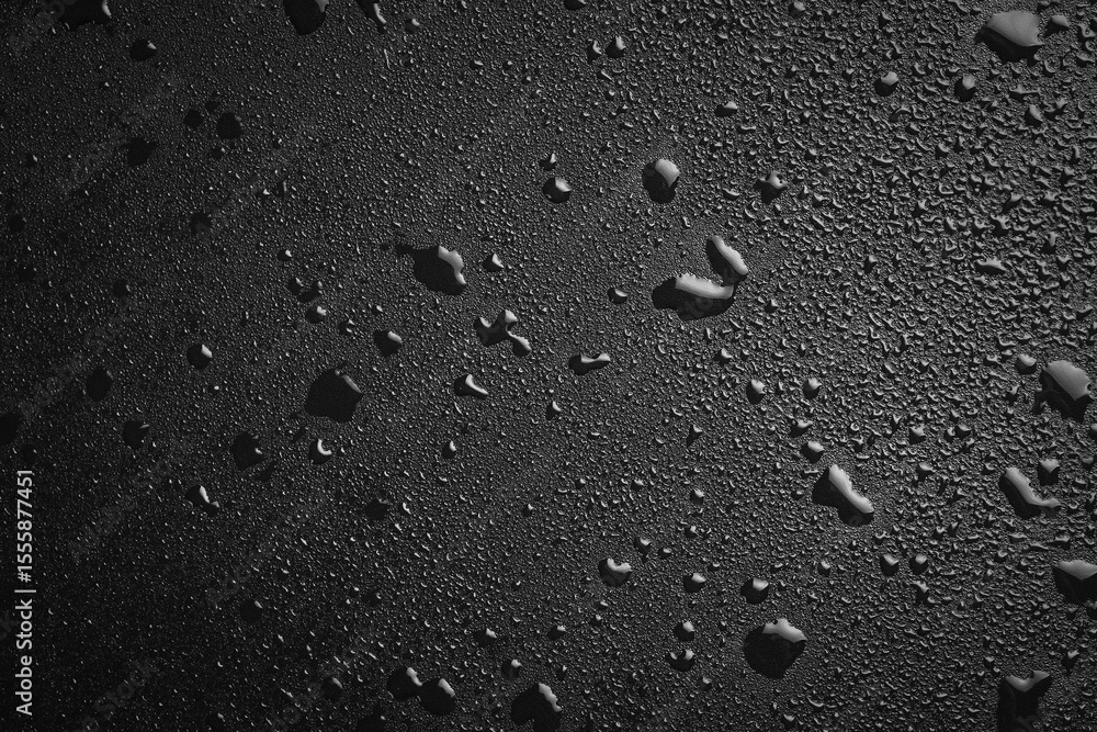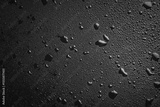 Drops of water on a black surface. The condensate. Top view. Free space.