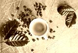 Coffee cup and coffee beans on gray background, Black coffee cup aromatic