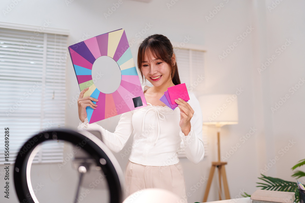 Online Personal Color Analysis Coaching with Asian Young Woman Color Palette Consultant for Wardrobe Outfit Beauty Advisor and Skin Undertone