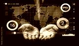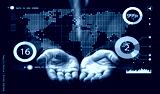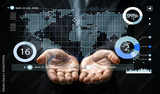 Businessman Presenting Digital Interface with Global Data Visualization and Analytics for Technological Innovation, Communication, and Connectivity