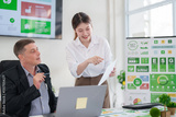 Business team collaborates on innovative ESG strategies for sustainable corporate growth and carbon footprint reduction in a modern office