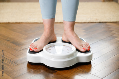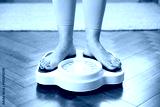 Woman checking weight on scale at home