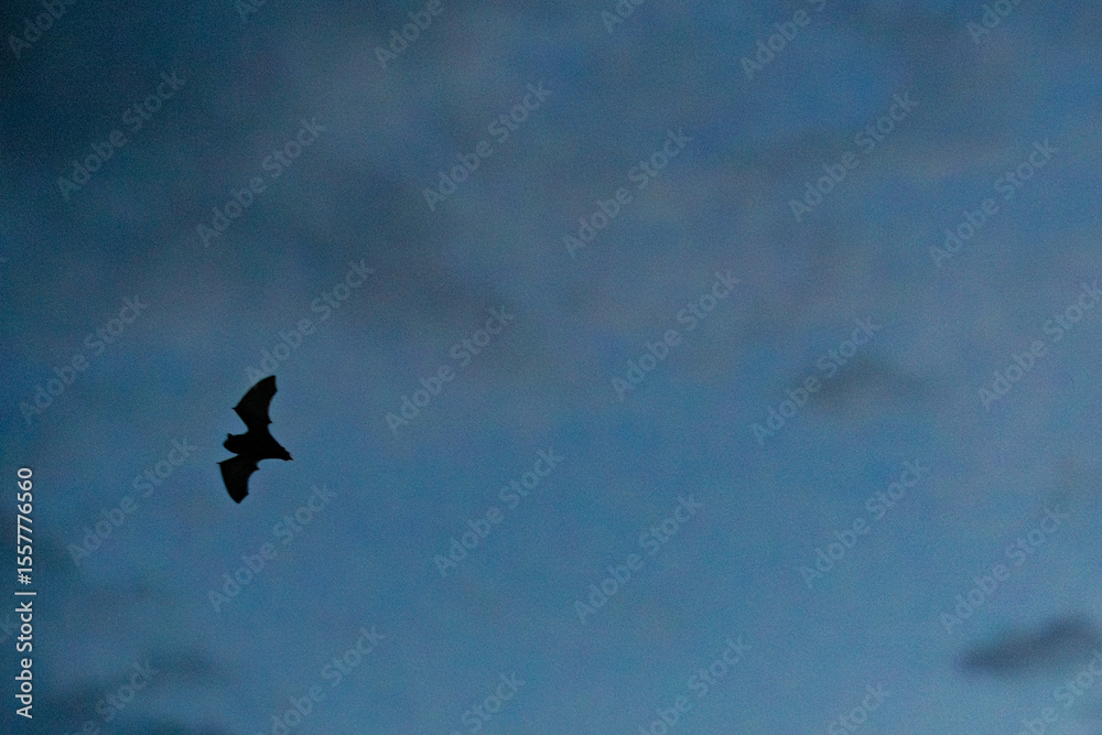 A beautifully detailed silhouette of a bat soaring gracefully against a starry night sky