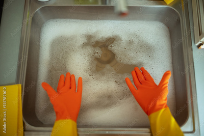 Overhead View of Clogged Sink