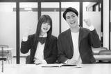 学生の面談や個別指導、進路指導の塾などのイメージの先生と生徒カメラ目線 目指せ合格~!