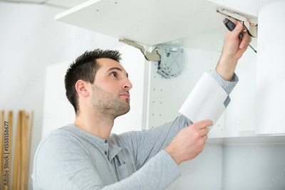 wardrobe joiners at installation work