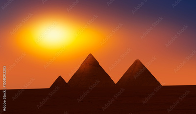 Giza Pyramid Complex at amazing sunset - Cairo, Egypt