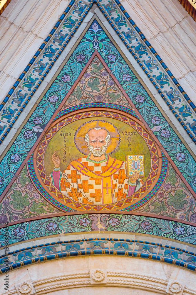 Saint Nikolas Fresco in front the Russian Church, Sofia, Bulgaria