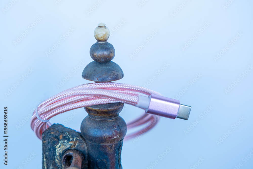 USB C to USB A cable in pink braided sleeve, data transfer, durable tech gadget, mobile tech accessory, durable design, modern charging solution, digital lifestyle