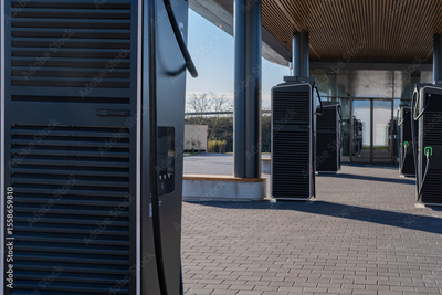 Power Charger electric vehicle, charging station with Lounge, electric vehicle in Europe, alternative energy, technology and innovation, green technology