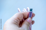 USB C to USB A cable in pink braided sleeve, data transfer, durable tech gadget, mobile tech accessory, durable design, modern charging solution, digital lifestyle