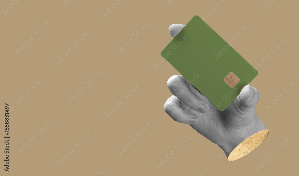 Card in hand, holding debit card for electronic payment. Modern transaction, business finance, and