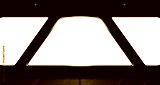 Black spaceship interior with isolated cut out transparent window. Futuristic dark starship with glowing lights